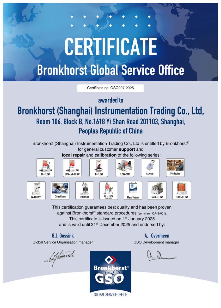 布瑯軻鍶特(上海)是荷蘭Bronkhorst High-Tech B.V在中國的銷售及售后服務(wù)中心,擁有設(shè)備齊全的高技術(shù)超凈室,專為中國客戶提供本地產(chǎn)品技術(shù)支持、維修和服務(wù);訓(xùn)練有素的服務(wù)團(tuán)隊擁有高精湛的產(chǎn)品技術(shù)知識,為客戶提供高效的銷售和售后服務(wù)支持??赏ㄟ^service@bronkhorst.cn這個郵箱隨時聯(lián)系到我們。