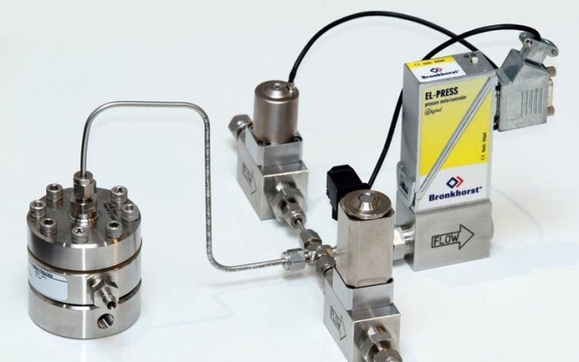 Bronkhorst的EL-PRESS過程壓力控制器(PPC)和高壓電磁控制閥形成一個前/后壓控制回路,穹頂加載式背壓調節(jié)器則用于調節(jié)催化劑研發(fā)反應器的背壓。