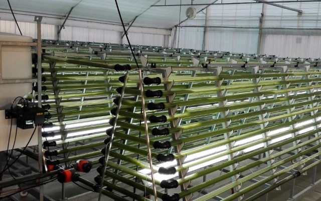 在Radius,微藻養(yǎng)殖的實驗室試驗在密閉的管狀光生物反應(yīng)器中進行,每個光生物反應(yīng)器的總?cè)莘e為300升,在受控溫室的大氣壓下操作。使用兩個IN-FLOW熱式質(zhì)量流量控制器,每個控制器向?qū)嶒炇已b置的反應(yīng)器供應(yīng)二氧化碳,每個反應(yīng)器的最大劑量流量為886 ml/min 二氧化碳。在當(dāng)前的pH值和提供的CO2流量之間有直接的、自動的反饋。