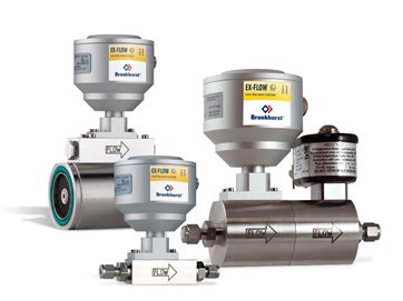 組合Bronkhorst??控制閥,質(zhì)量流量計(jì)(MFM)可用作質(zhì)量流量控制器(MFC)。控制閥可一體集成或分體式安裝,以測(cè)量和控制氣體流量。EX-FLOW閥門配有防爆線圈,有兩種型號(hào)可供選擇: